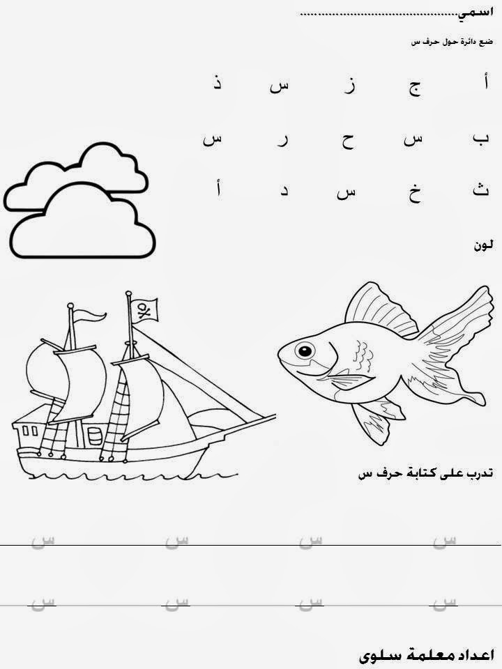 الحرف الناقص حرف السين اللغة العربية اوراق عمل